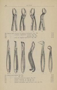 Image[Fig.706. Davier pour incisives et canines inférieures / Fig.707. Davier pour molaires supérieures droites /...