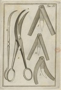 Image[Fig.1. Ciseaux courbes pour incision de la gencive / Fig. 2 Autre instrument métallique à...