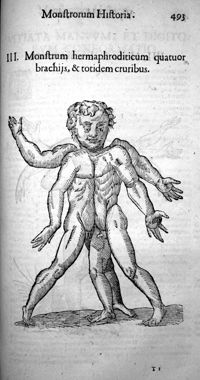 ImageMonstrum hermaphroditicum quatuor brachiis, & totidem cruribus
