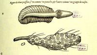 ImageFigure de deux poissons, l'un comme un panache, et l'autre comme une grappe de raisin