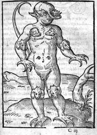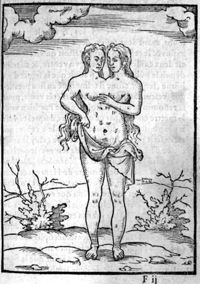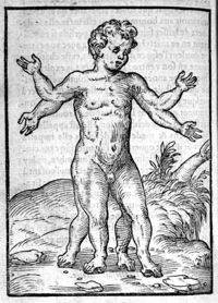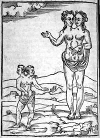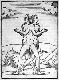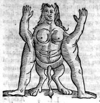 Image[Monstre avec une tête et une poitrine de femme, les bras et les jambes siamoises,...
