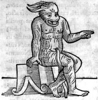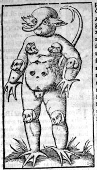 Image[Monstre dont le corps est d'un rouge luisant, tout ridé, avec une tête cornue, de...