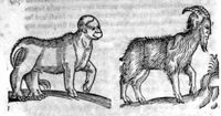 Image[Animal avec une tête de singe et chevreau avec un visage humain]
