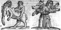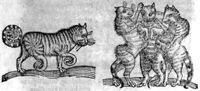 Image[Monstre quadrupède avec des bras humain, une tête de femme, des seins et des pattes...