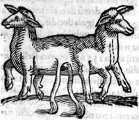 Image[Brebis siamoises par le postérieur : deux têtes, six pattes, deux queues]