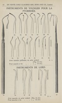 ImageInstruments de Younger pour la pyorrhée. / Instruments de Lord.