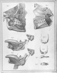 Image[Deux muscles ptérygoïdiens, stylo-glosse, stylo-hyoïdien, hyo-glosse, génio-glosse et génio-hyoïdien, os hyoïde]
