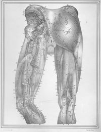 Image[Vaisseaux lymphatiques superficiels de la partie supérieure et postérieure de la cuisse, ganglions inguinaux et...