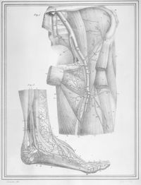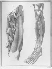 Image[Artères superficielles de la face antérieure de la jambe et de pied sur un cadavre...