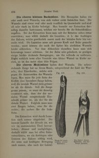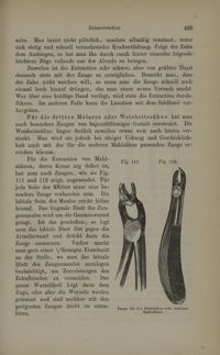 Image[Fig.109. Pince pour molaire supérieure droite / Fig.110. Une molaire supérieure gauche tenue avec la...