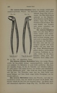 Image[Fig.113. Pince pour les incisives inférieures / Fig.114. Pince pour les molaires inférieures droites]