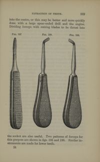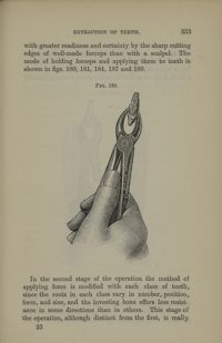 Image[Technique d'extraction / Fig.192. Pince pour extraction des racines des dents de devant de la...
