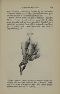 Image[Technique d'extraction / Fig.187. Manière de tenir la pince pour extraction des prémolaires]