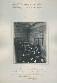 ImageFaculté de médecine de Paris : bibliothèque, salle de lecture, le bureau des bibliothécaires