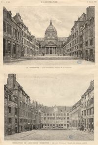 ImageLa Sorbonne, cour d'honneur : façade de la chapelle ; démolition de l'ancienne Sorbonne, la...