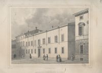 ImageScène aux obsèques de La Rochefoucauld-Liancourt devant l'église Saint-Roch en 1827