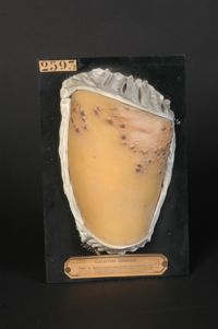Objet physiqueSyphilis héréditaire. Gommes ostéopériostiques du crâne chez un foetus (reproduction d'une pièce anatomique)