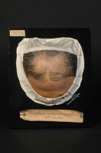 Objet physiquePsoriasis du visage en vespertilio. Femme âgée de 43 ans, sans profession (Voir coupe Musée...