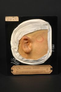 Objet physiqueLupus hypertrophique de la joue. Lupus myxomateux de l'oreille droite. Femme âgée de 37 ans,...