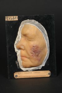 Objet physiqueChancres syphilitiques de la narine et de la lèvre supérieure (premier moulage). Roséole syphilitique (deuxième...