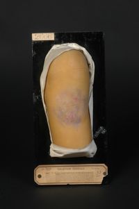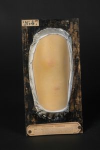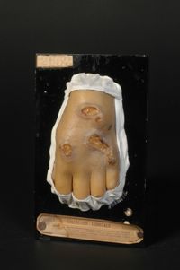 Objet physiqueSporotrichose. Sporotrichosides dermiques verruqueuses, nées autour des orifices fistuleux de gommes sporotrichosiques sous-cutanées. Le moulage...
