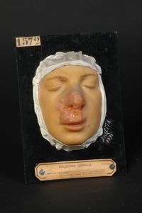 Objet physiqueLupus tuberculeux exedens du nez ; cicatrices de lupus sur la joue. Jeune homme âgé...