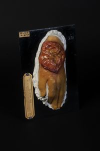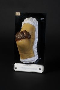 Objet physiqueCancer mélanique du talon gauche. Tumeur d'un violet noirâtre, lobulée, ulcérée, du volume du poing,...