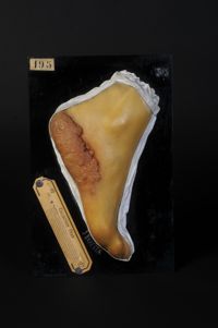 Objet physiquePapillome du pied droit ; récidive. La pièce montre l'aspect de l'ulcération, deux mois après...