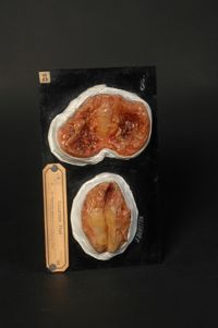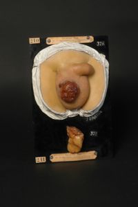 Objet physiqueHématocèle vaginale ancienne (coupe de la tumeur). On voit en bas, la coupe du testicule...