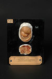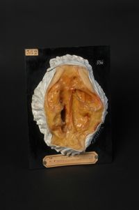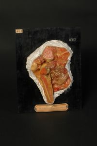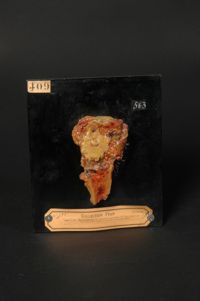 Objet physiqueTumeur à myéloplaxes ayant détruit partiellement le maxillaire inférieur (coupe anatomique). Jeune fille âgée de...