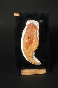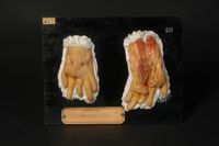 Objet physiqueEnchondrome de la première phalange du petit doigt gauche. En bas du moulage, on voit...
