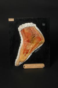 Objet physiqueTumeur blanche médio-tarsienne. Jeune homme âgé de 17 ans. (coupe anatomique du pied amputé). L'extrémité...
