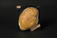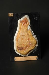 Objet physiqueMéningite tuberculeuse (pièce anatomique). Hémisphère gauche du cerveau. Forte hyperhémie méningée au niveau de l'extrémité...