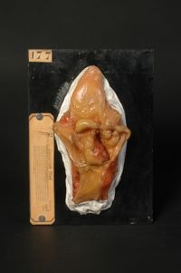 Objet physiqueHernie ombilicale étranglée, moulée quelques heures avant le décès. Non opérée. La région ombilicale est...