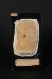 Objet physiqueTrypanides (Trypanosomiase cutanée) contractée dans la région de Fort-Lamy (Tchad), méconnue 18 mois, accompagnée d'adénopathies...
