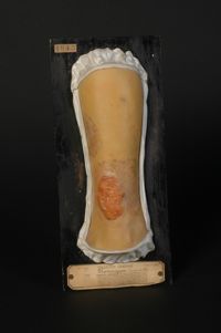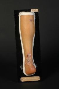 Objet physiqueDiagnostic indéterminé. Ulcérations papillomateuses de la jambe, d'origine probablement parasitaire. Homme âgé de 47 ans,...