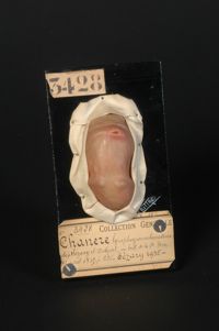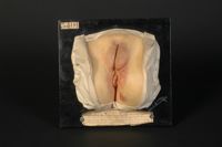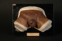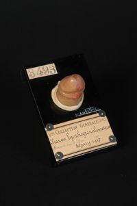 Objet physiqueMaladie de Nicolas Favre. Eléphantiasis vagino-anorectale avec œdème débutant de la grande lèvre, œdème éléphantiasique...