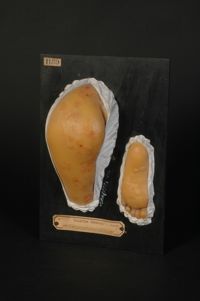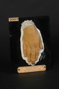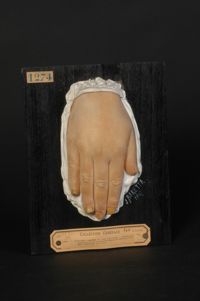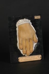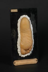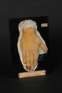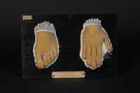 Objet physiqueOnychogryphose. Femme âgée de 50 ans, domestique. De chaque côté du moulage, se trouve un...