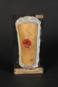 Objet physiqueUlcère simple de la jambe, simulant une gomme syphilitique ulcérée. Femme âgée de 25 ans,...