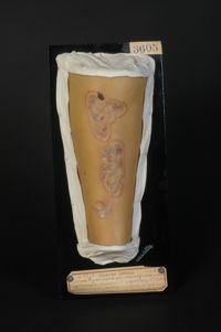 Objet physiqueSclérodermie en plaques ; morphée. Plaques nombreuses et très étendues. (Moulage très décoloré, Inv. 1922)....