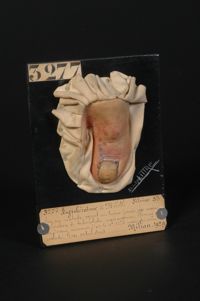Objet physiqueAngiokératomes compliqués de purpura iodique (Inv. 1922), chez un syphilitique héréditaire. Homme âgé de 35...