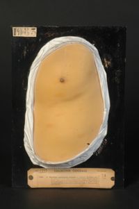 Objet physiqueCicatrices atrophiques consécutives à des syphilides tuberculeuses zoniformes (vergetures syphilitiques de Balzer). Femme âgée de...