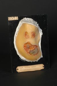Objet physiqueSyphilide ulcéreuse tertiaire, très étendue, de la lèvre inférieure et des commissures labiales. Homme âgé...