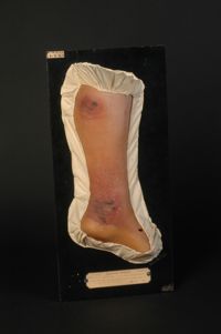 Objet physiqueCyanose préulcéreuse de la jambe droite. Homme âgé de 48 ans, atteint de gomme syphilitique...