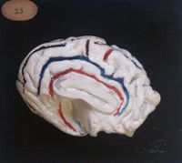Objet physiqueCerveau du boeuf, face interne, en plâtre colorié ; Sulci peints