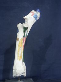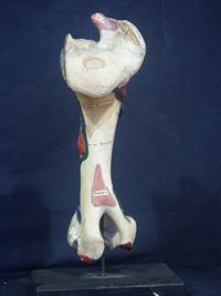 Objet physiqueFémur du boeuf, avec les insertions musculaires coloriées, préparé par Petitcolin