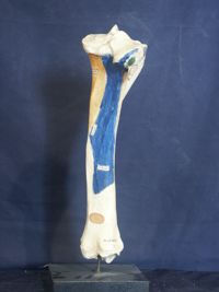 Objet physiqueRadius du boeuf, avec les insertions musculaires coloriées, préparé par Petitcolin