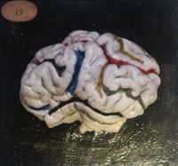 Objet physiqueCerveau du boeuf, face externe, en plâtre colorié. sulci peints