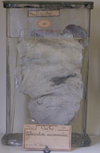 Objet physiqueTuberculose débutante de la mamelle chez une vache, un seul tubercule dans le ganglion rétro-mammaire