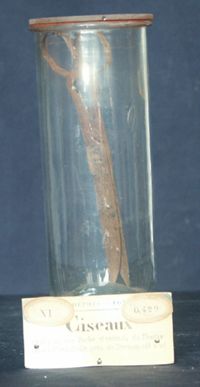 Objet physiqueCiseaux avalés par une vache et extraits du thorax, entre la 6e et la 7e...